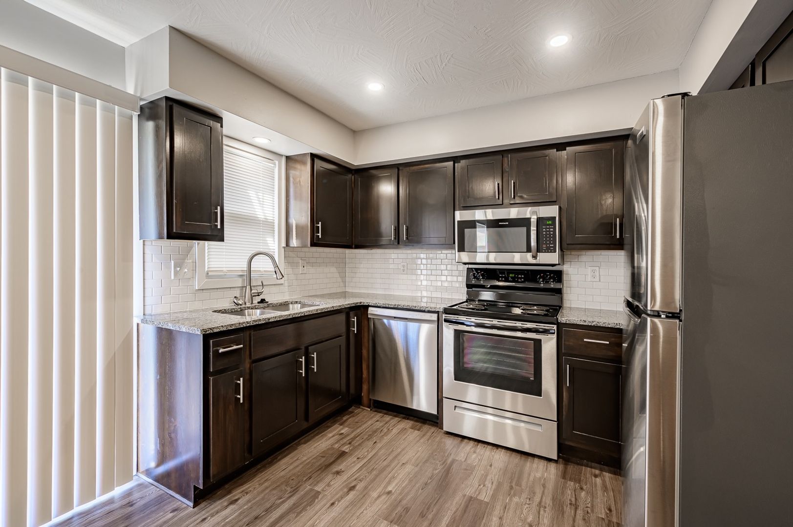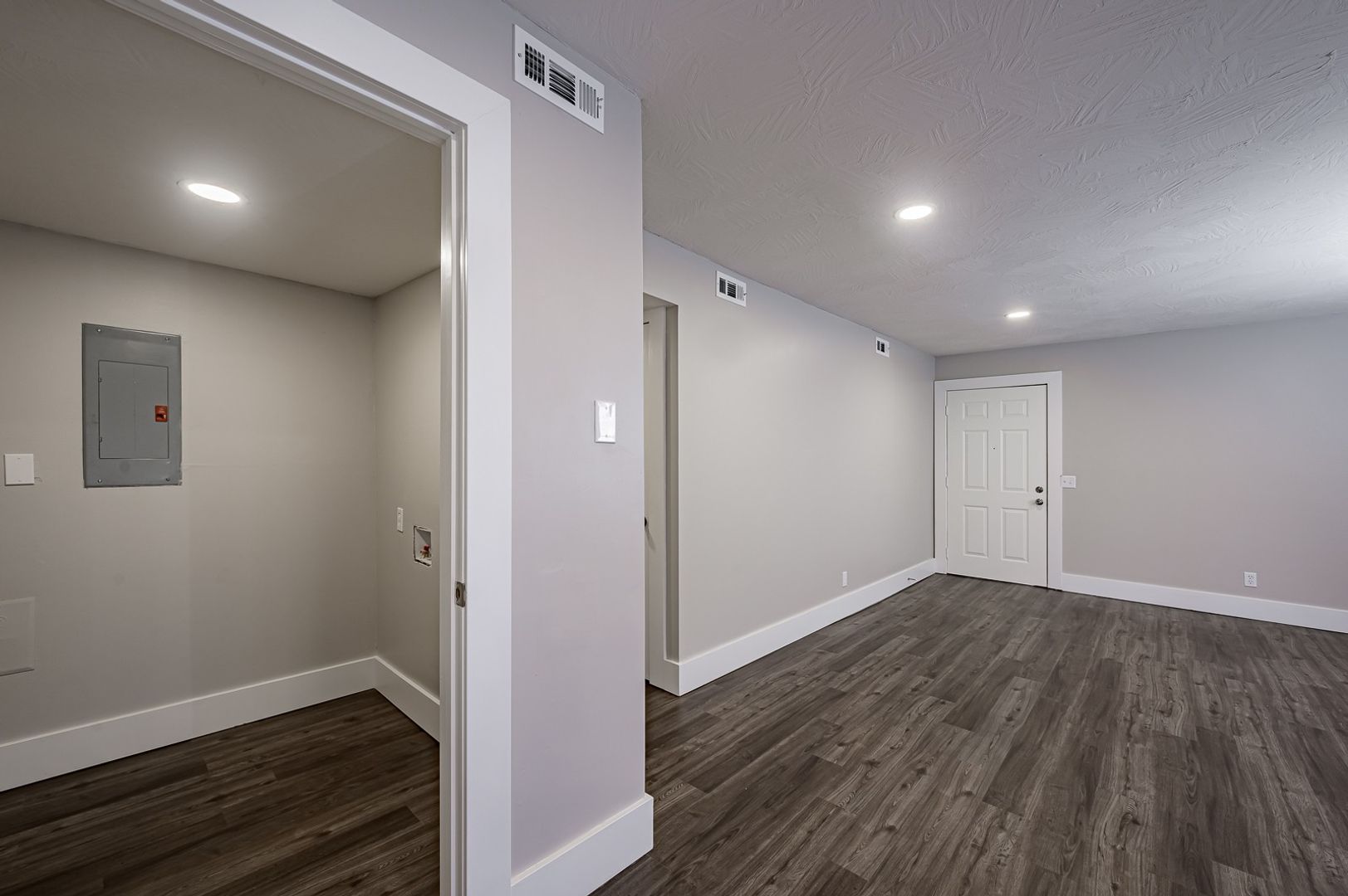 Inside, you’ll find stylish barnwood grey luxury vinyl plank flooring throughout, soft grey walls with crisp white trim, and a beautifully updated living area featuring recessed lighting and textured ceilings. The open, inviting space is perfect for both relaxing and entertaining.