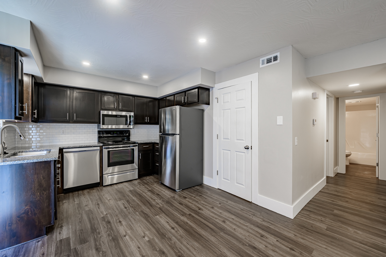 This spacious 2 bedroom, 2 bath apartment was fully remodeled in 2021-2022. It features Barnwood grey vinyl plank flooring throughout along with all brand new stainless steel appliances giving this home a modern feel. The generously sized living area has been renovated with recessed lighting and textured ceilings. The Master Suite includes a large walk-in closet and a private full bath. Here tenants can enjoy the very best location in Springfield. This area continues to grow with Starbucks, Jersey Mikes, Buffalo Wild Wings and more all within walking distance. Easy access to Cox Hospital, Mercy Medical Center and The Meyer Center.